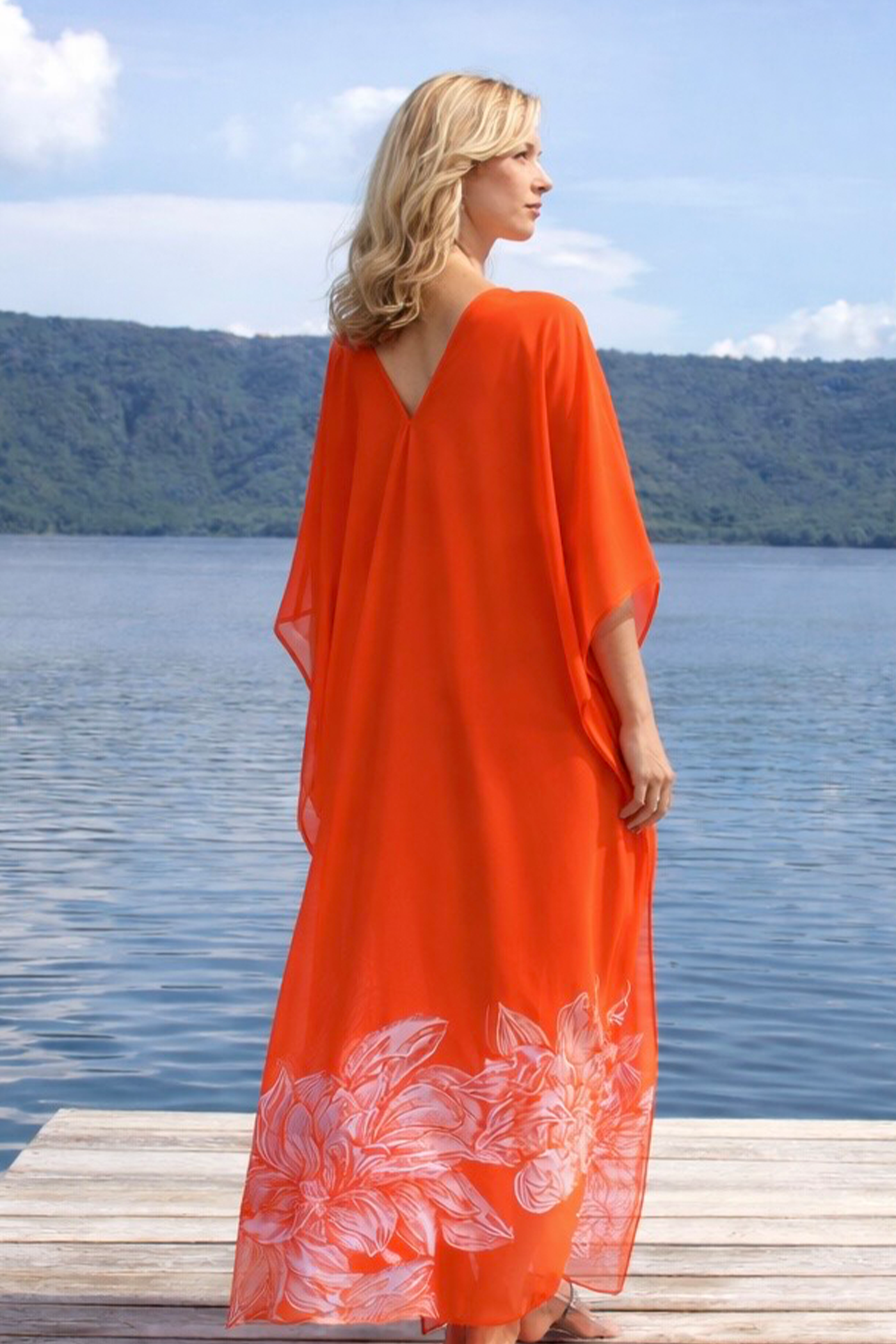 The Lotus is a serene, nature‑inspired gown crafted for women who embrace elegance with a sense of freedom and lightness. Its flowing silhouette and deep V‑shaped open back create a graceful, elongated line, while the white floral accents near the hem add a soft, organic touch reminiscent of petals floating on water. The vibrant color and fluid movement make it perfect for resort events, lakeside celebrations, or editorial‑style photoshoots.